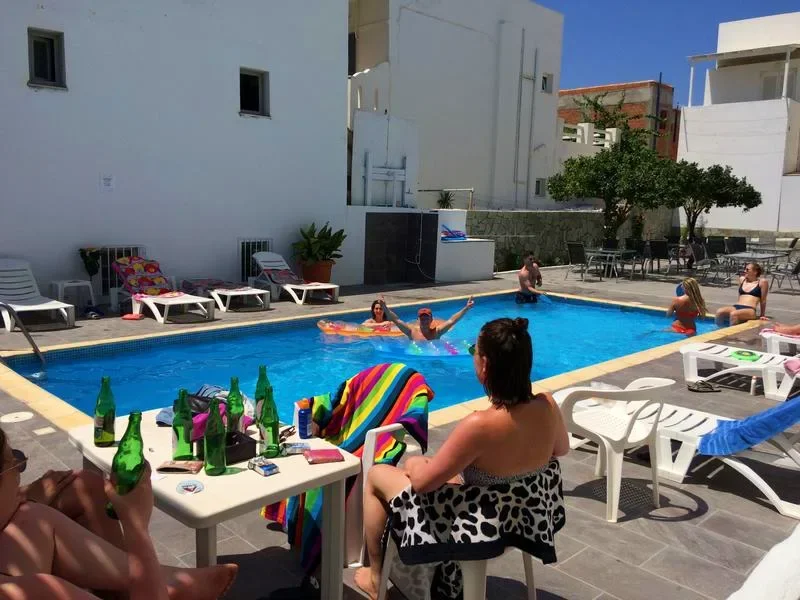 Paros Backpackers is the kind of hostel where meeting other travelers comes naturally. The rooftop terrace at sunset lends itself to an easy social environment The socials start early—guests are invited into a WhatsApp group on arrival that helps coordinate between all of the guests and the staff!